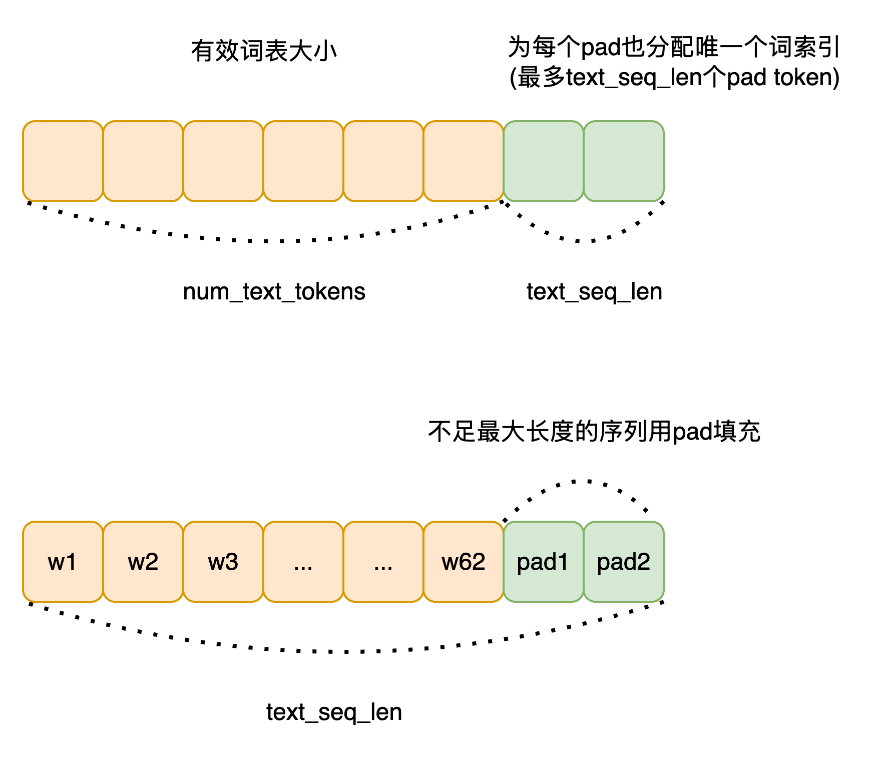 文本 token 总数调整(添加 padding token):