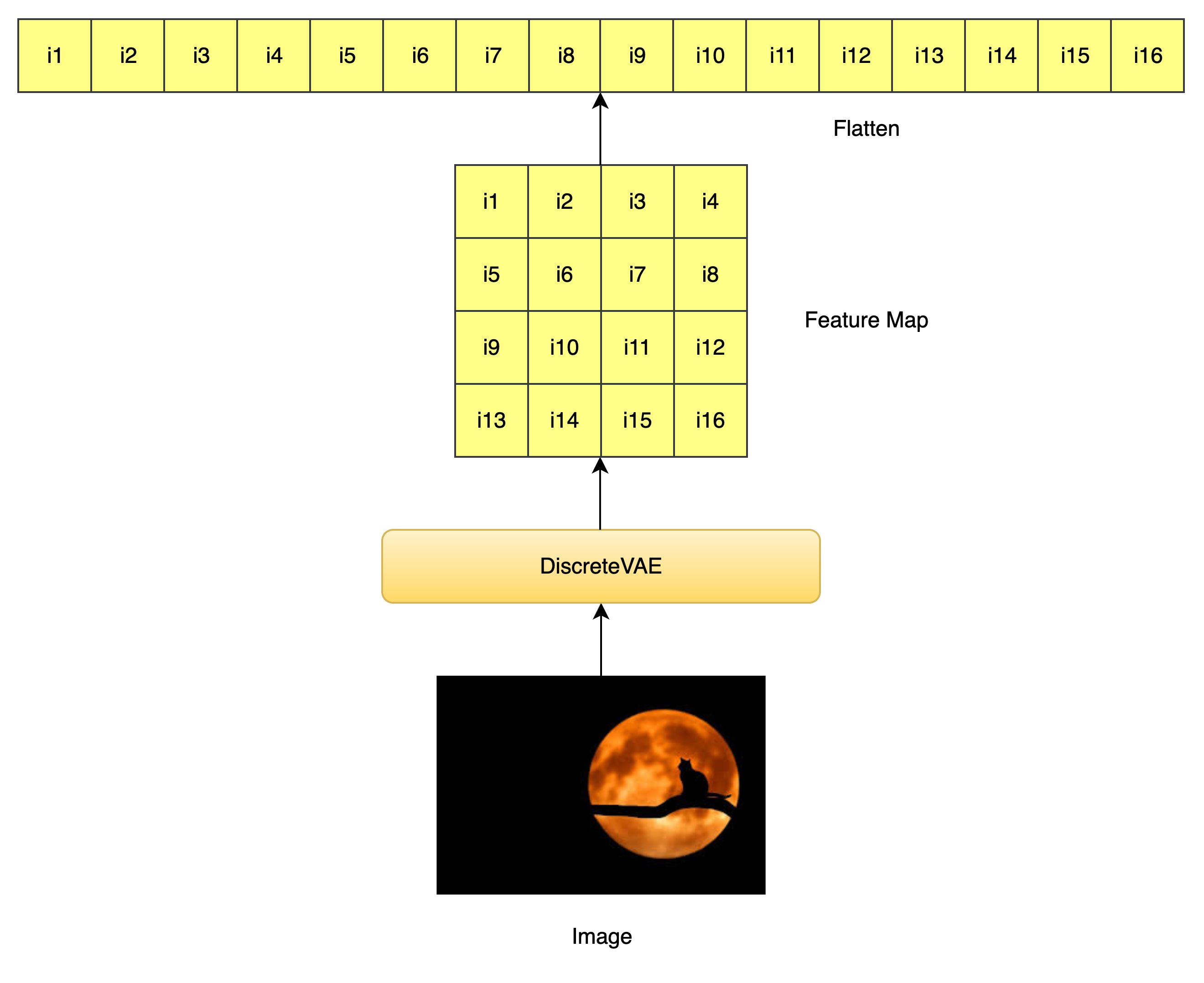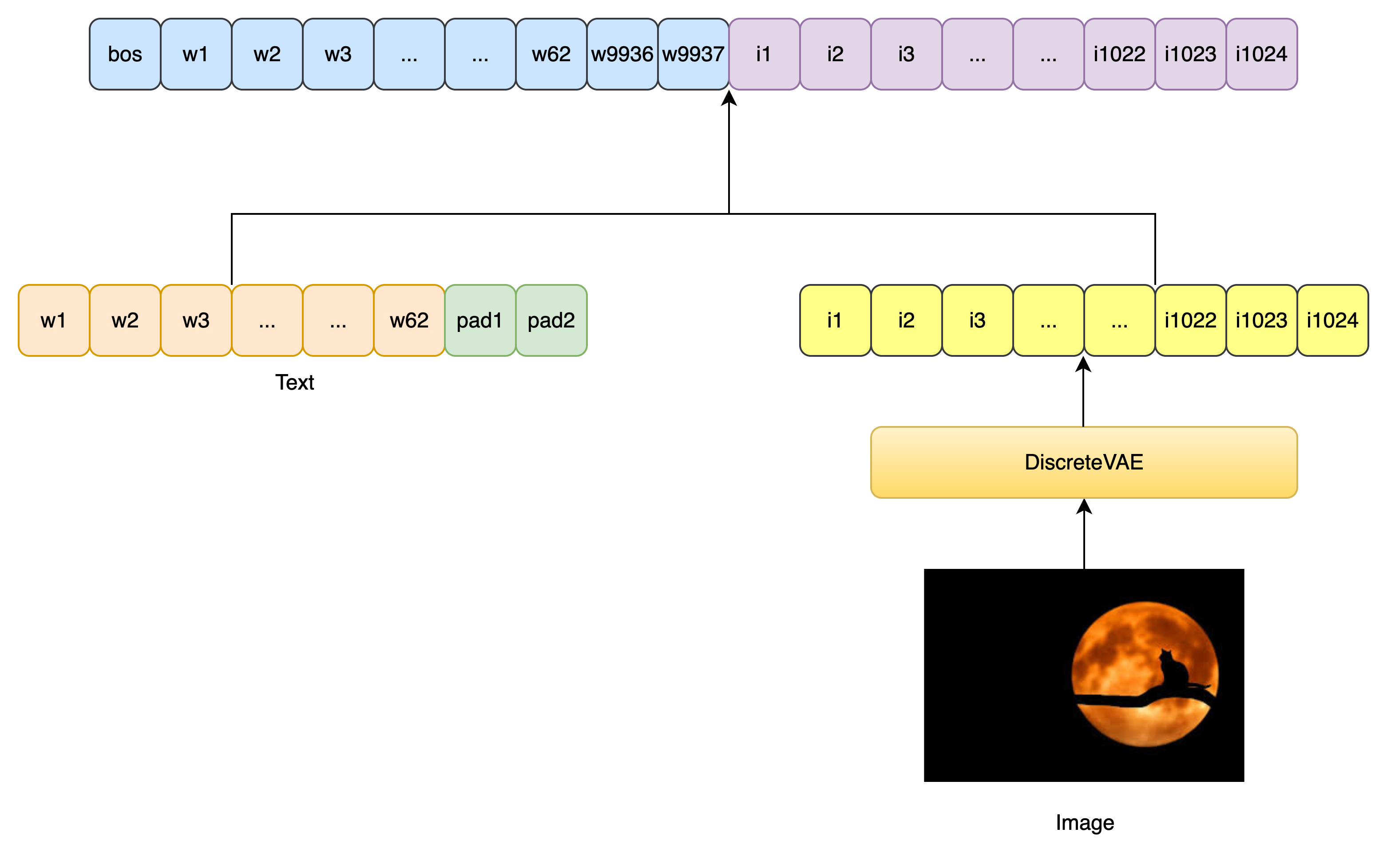 图像输入经过 VAE 编码后,变成了 image_fmap_size × image_fmap_size 的二维 token map,展平后是 image_seq_len 长度的一维序列,供 Transformer 使用。